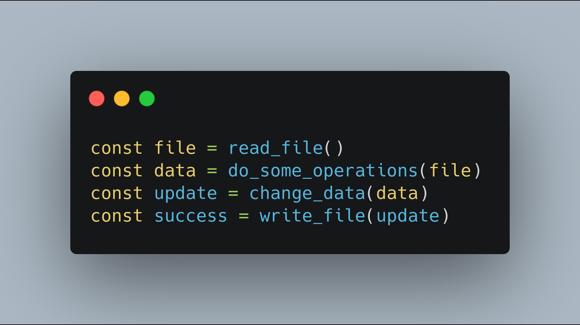 The code you see above is some gibberish code, however, you might have got a basic idea with what the code is doing. But there is a problem with this approach. The problem is the same, the "scenario 1" issue. The first line is blocking I/O operation and take some time to be executed. So our code sits there allocating all the resources and wait. Our code is literally doing nothing in the time when the read operation is going on or other such operations. We could have done other CPU operations or could have completed other small tasks in the meantime while the first line is still waiting to be executed.